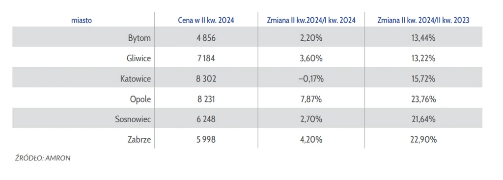 Na południowym zachodzie, najmocniej kwartalnie wzrosły ceny w Opolu (blisko 8 proc.), ale w Katowicach już się zupełnie zatrzymały. W skali roku w poszczególnych miastach tej części kraju był wzrost od 13 do 24 proc.