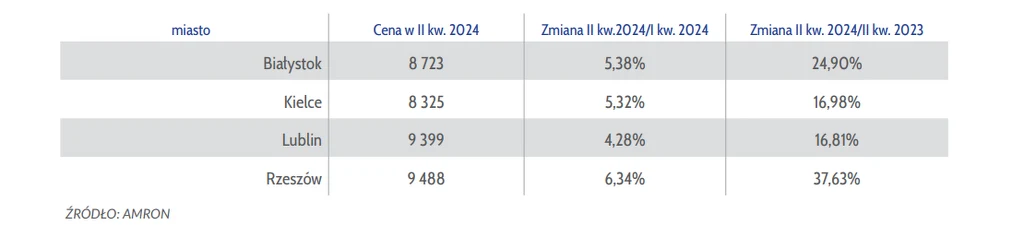 Na wschodzie Polski najwyższą cenę średnią zanotowano w Rzeszowie - 9 488 zł. Największy wzrost kwartalny, bo ponad 6 proc., również odnotowano w Rzeszowie. Także tam była największa podwyżka w skali rocznej, bo aż o 37 proc.