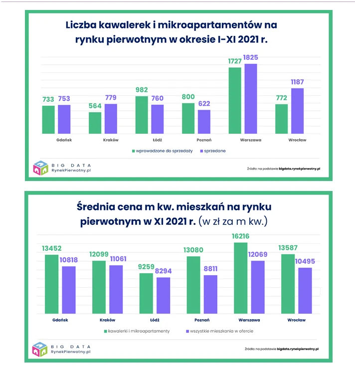 Równocześnie wyjaśnia, że warunki techniczne zawierają konkretne wymagania dotyczące czasu nasłonecznienia mieszkań. Problem w tym, że w gęstej zabudowie śródmiejskiej nie jest łatwo spełnić te wymogi. Dlatego nie obejmują one mieszkań jednopokojowych. W pewnym sensie wymusza to na deweloperach budowanie kawalarek. Z danych BIG DATA RynekPierwotny.pl wynika, że w miastach, w których ceny mieszkań są najwyższe, deweloperzy sprzedali w tym roku więcej kawalerek niż dostarczyli ich na rynek. Oferta mocno się więc skurczyła, a ceny są średnio najwyższe w przeliczeniu na metr kwadratowy.
