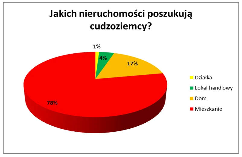 W większości obywatele innych państw poszukują do zakupu mieszkań (78 proc. wszystkich klientów). 17 proc. obcokrajowców składa zapytania dotyczące domów. Niewielu z nich interesuje się rynkiem działek.