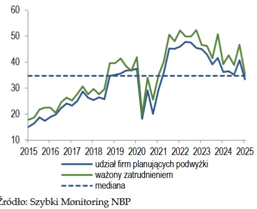 - NBP: Spada udział przedsiębiorstw planujących podwyżki płac w perspektywie kwartalnej