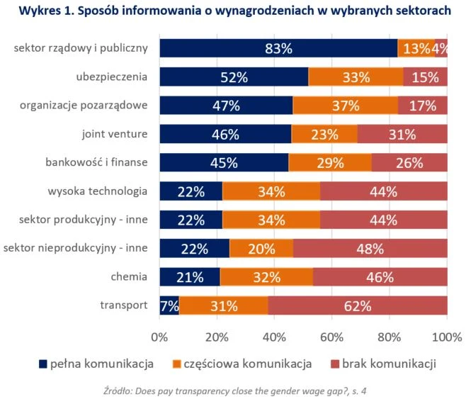 - zawody - w przypadku 16 na 22 badanych zawodów (73 proc.), różnica w wynagrodzeniach kobiet i mężczyzn zmniejszyła się, gdy respondenci uznali firmową politykę wynagrodzeń za przejrzystą.