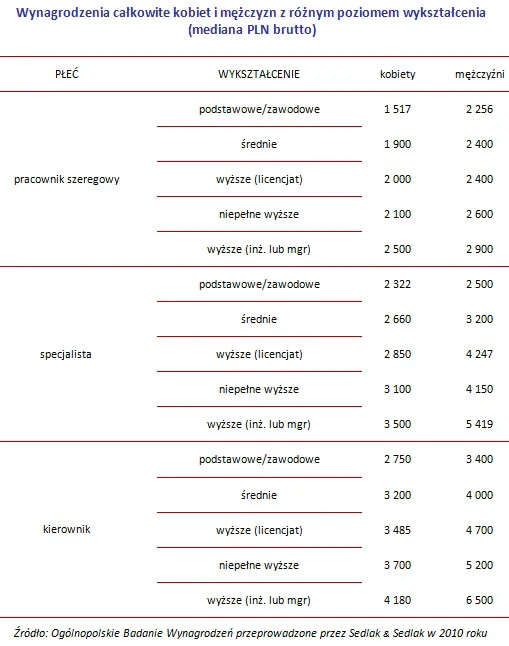 Kobiety w naszym kraju walczą o swoje wykształcenie, a pracę zawodową traktują jako naturalny element życia. Wydaje się, że stereotyp Matki Polki odszedł do lamusa. Czy aby na pewno? Wystarczy porównać wynagrodzenia kobiet i mężczyzn, aby przekonać się, że "podziały płciowe" wciąż istnieją. Przedstawiamy dowody na dyskryminację kobiet na rynku pracy w Polsce, zawarte w wynikach Ogólnopolskiego Badania Wynagrodzeń, przeprowadzonego przez firmę doradztwa personalnego Sedlak & Sedlak na próbie ponad 101 tys. internautów..