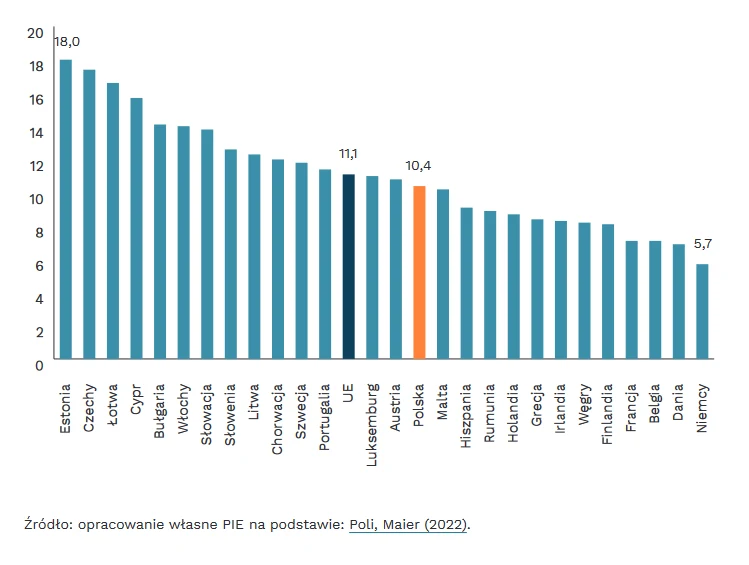 Luka płacowa przy porównaniu zarobków kobiet i mężczyzn w 2020 r. wyniosła w Polsce 10,4 proc. Był to nieco niższy poziom niż ogółem w UE (11,1 proc.) - wylicza PIE.