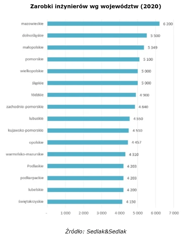 Jeśli chodzi o lokalizacje, przodują tutaj największe ośrodki przemysłowe i technologiczne. Najwyższe wynagrodzenia dla inżynierów są kolejno w województwach: mazowieckim, dolnośląskim, małopolskim, pomorskim, wielkopolskim i śląskim.