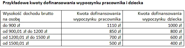 Na jakie dofinansowanie mogą liczyć pracownicy? I w tym wypadku wszystko zależy od zapisów w regulaminie. Generalna zasada jest taka, że im wyższy dochód brutto na osobę w rodzinie, tym niższe wsparcie, jako że głównym wyznacznikiem jest wspomniane wyżej kryterium socjalne, przy czym przeciętne dofinansowanie wypoczynku wakacyjnego wynosi kilkaset złotych.