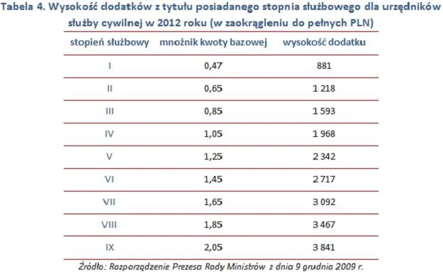 - dodatek służby cywilnej z tytułu posiadanego stopnia służbowego.