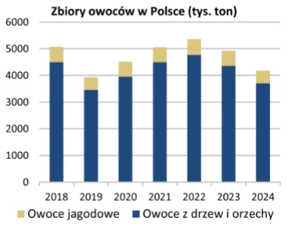 Poniżej zbiory owoców w Polsce w ubiegłych latach (źródło: Credit Agricole)