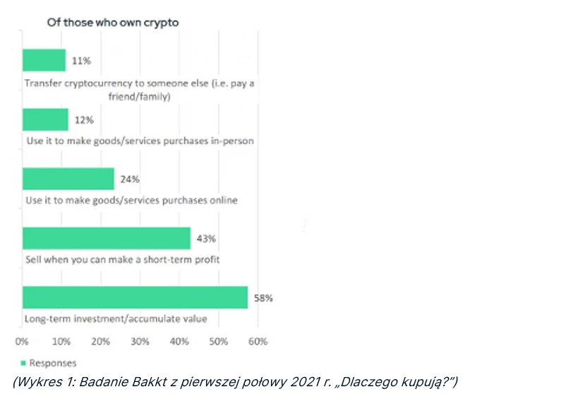 Jak widać na wykresie 1, głównym powodem kupowania kryptowalut jest nadal chęć osiągnięcia zysku, zarówno w perspektywie krótko-, jak i długoterminowej. Niektórzy z kupujących chcą jednak wykorzystywać kryptowaluty w innych celach, takich jak przelewy, płatności i zdecentralizowane zastosowania, i te dodatkowe funkcje kryptowalut w bieżącym roku zaczęły realnie zyskiwać na znaczeniu.