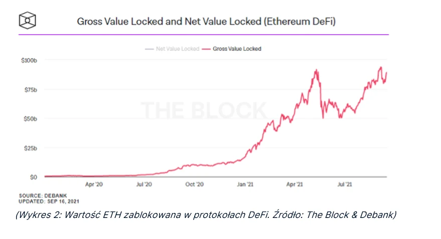 Coraz większy apetyt na ryzyko wpłynął nie tylko na bitcoina, ale również na blockchainy wspierające inteligentne kontrakty, takie jak ethereum. Inteligentne kontrakty umożliwiają dodatkowe funkcjonalności poza klasycznym transferem wartości i mają wiele przypadków użycia w protokołach działających na tych blockchainach.
