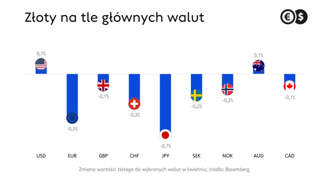 Dodajmy, że pozytywne informacje docierają również z amerykańskiego rynku pracy. Ubiegłotygodniowy spadek liczby nowo zarejestrowanych bezrobotnych poniżej 600 tysięcy nie był jednorazowy. Czwartkowe dane sugerują dalszą poprawę. Liczba nowych wniosków jest najniższa od wybuchu pandemii, co sprawia, że oczekiwania zakładające przyrost liczby zatrudnionych poza rolnictwem w USA, przekraczający w kwietniu milion etatów, są jak najbardziej realne. Rozlewanie się dobrej koniunktury na kolejne gospodarki powinno odpychać kapitał od dolara w kierunku tych walut, których kraje pochodzenia w danym momencie będą miały za sobą najszybszy postęp szczepień i największe szanse na szybkie odmrażanie gospodarki. W pierwszym kwartale był to funt, obecnie jest euro. Liczymy, że niebawem przyjdzie kolej złotego.