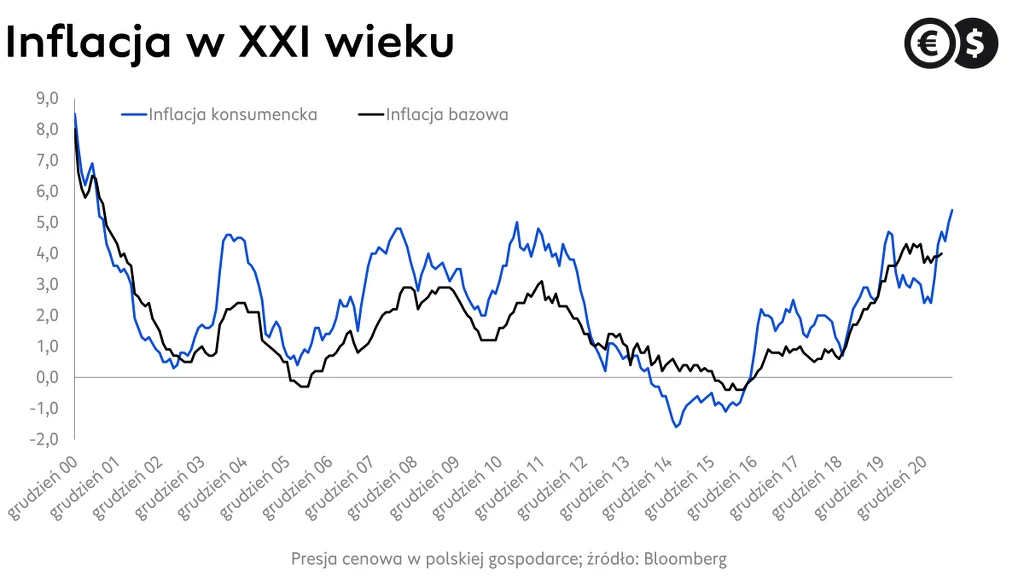 Informacje te trafiają na podatny grunt. Z Rady Polityki Pieniężnej docierały ostatnio coraz liczniejsze głosy, że przy spełnieniu pewnych warunków w listopadzie może zebrać się większość pozwalająca rozpocząć cykl podwyżek stóp procentowych. Najnowsze dane zdecydowanie oddziałują w tym kierunku. Na przeszkodzie stać nie będzie skup aktywów, który praktycznie został wygaszony. Wszystko zależeć będzie od sytuacji epidemicznej oraz - przede wszystkim - treści listopadowej projekcji inflacyjnej. Jeśli nie wskaże ona, że presja cenowa zacznie szybko wygasać, to RPP nie będzie skłonna zwlekać z normalizacją.