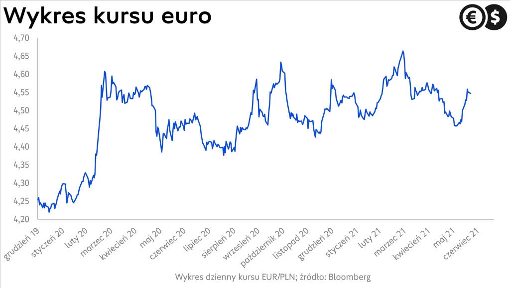 Kurs euro nie powinien zadomowić się na obecnych pułapach. Silny wzrost gospodarczy w kraju i na świecie oraz korzystne (z punktu widzenia waluty) tendencje w bilansie płatniczym będą sprzyjać powrotowi złotego na wzrostową ścieżkę. Po ostatnim urealnieniu oczekiwań odnośnie do zamierzeń Rady Polityki Pieniężnej kanał polityki monetarnej nie stanowi już zagrożenia. Podtrzymujemy prognozy, że na koniec roku EUR/PLN znajdzie się w okolicy 4,40.