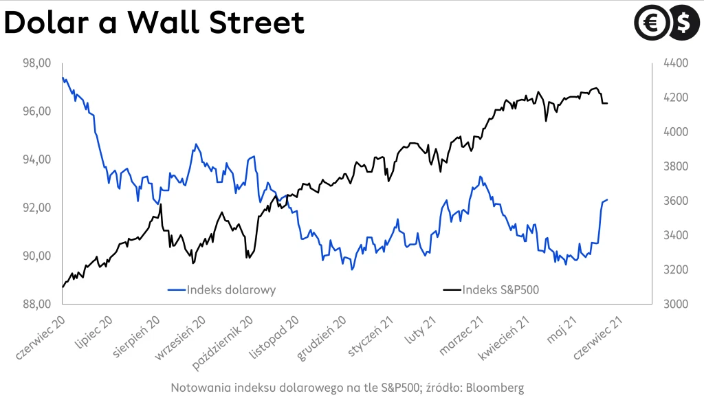 Zabójcza kontra dolara to efekt zmiany nastawienia Rezerwy Federalnej, która postawiła pod wielką presją cały koszyk walut gospodarek wschodzących. W ostatnich dniach nie umocniła się żadna z nich. W Fed rozpoczyna się dyskusja o porzucaniu kryzysowej polityki. Zasugerowano także wcześniejsze podwyżki stóp. Oczywiście pozostają one odległą i niepewną perspektywą. Zdaniem decydentów optymalny moment na ruch kosztu pieniądza to 2023 rok. Rosnąca liczba przedstawicieli FOMC skłonnych szybciej zacieśniać politykę jest jednak odbierana jako wzbierające zaniepokojenie, że inflacja w USA (obecnie jest najwyższa od 13 lat) może zacząć wymykać się spod kontroli.