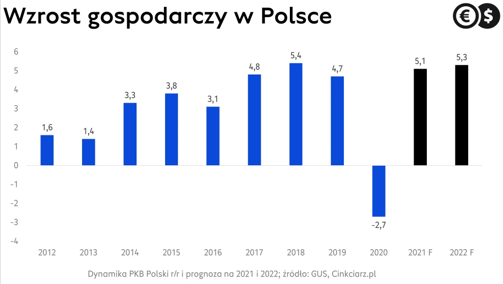 Na froncie danych makroekonomicznych najważniejsze w tym tygodniu mogą okazać się barometry nastrojów w europejskich gospodarkach, które oddawać będą, jak potężna jest fala popytu rozlewająca się przez nie po zniesieniu restrykcji. W naszym regionie w centrum uwagi znajdą się posiedzenia banków centralnych Węgier i Czech. W obu przypadkach scenariuszem bazowym jest rozpoczęcie podwyżek stóp procentowych, co - w świetle ubiegłotygodniowej wyprzedaży - powinno dać impuls do umocnienia forinta i korony. Na krajowym podwórku już na starcie tygodnia zostaną opublikowane dane o produkcji przemysłowej i sprzedaży detalicznej. Kluczowe wskaźniki powinny potwierdzić, że dynamika PKB w tym kwartale przybierać będzie wartości dwucyfrowe, a w całym 2021 roku tempo wzrostu przekroczy 5 proc.