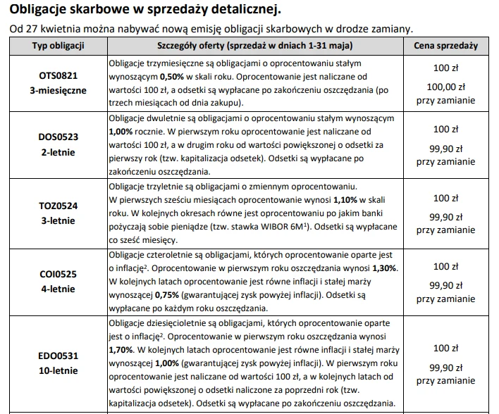 Warunki emisji obligacji oszczędnościowych Skarbu Państwa w maju.