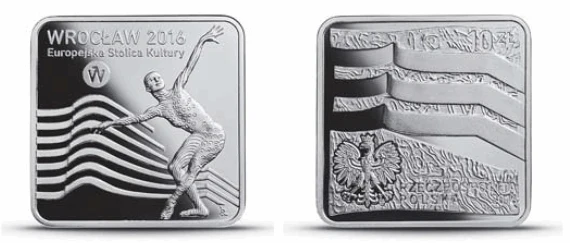 Na monecie srebrnej również został wykorzystany architektoniczny motyw schodów Narodowego Forum Muzyki we Wrocławiu, któremu na rewersie towarzyszy postać artysty - performera lub tancerza. Postać tanecznym gestem wskazuje na budowlę, zachęcając do wejścia. Jego strój zdobią graficzne motywy zaczerpnięte z systemu identyfikacji graficznej ESK. Powyżej graficzny znak ESK Wrocław 2016.