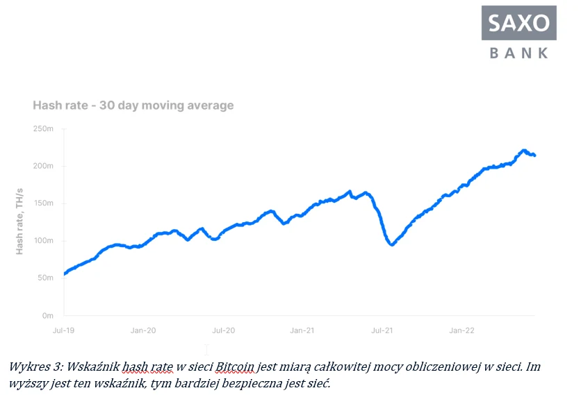 Dodatkowo coraz większa część nagród za wydobycie trafia na giełdy zamiast do osobistych portfeli, sygnalizując szeroko zakrojony zamiar sprzedaży w perspektywie krótkoterminowej. Z drugiej strony, moc obliczeniowa dostarczana przez kopaczy jest tylko nieznacznie niższa od szczytowego poziomu, jak widać na wykresie 3, co wskazuje, że górnicy nie wykazują żadnych oznak kapitulacji wobec presji cenowej.