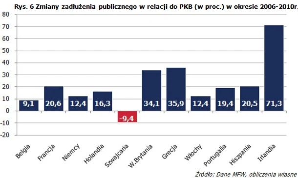 Z analizowanych krajów jedynie, procentowo większy spadek zaangażowania, odnotowano w odniesieniu do banków belgijskich (252 procent). Dla porównania banki niemieckie zmniejszyły ekspozycję tylko o 72 procent, a francuskie ledwie o 41 procent.