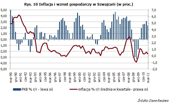W gospodarce szwajcarskiej od dłuższego czasu widoczny jest brak presji inflacyjnej.